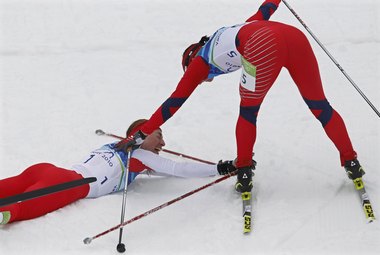 Шедшая на невероятный рекорд - четыре золотые медали на одной Олимпиаде - Марит Бьорген не сумела установить это достижение. В заключительной гонке Игр-2010 норвежка на финишной прямой пропустила вперед Юстину Ковальчик из Польши. Уже задолго до завершения гонки Ковальчик и Бьорген дали понять соперницам, что не дадут никому вмешаться в спор за золото. На отметке 25 километров их преимущество над группой преследовательниц составляло 43 секунды. Менее чем за километр до финиша Ковальчик предприняла атаку, но серьезно оторваться от грозной конкурентки не смогла. Показалось, что теперь четвертая победа от Бьорген, считающейся куда более мощным финишером, не уйдет. Норвежка и вышла было вперед, но Ковальчик каким-то невероятным усилием сумела не только поддержать этот темп, но и пересечь заветную черту мгновением раньше соперницы. Для польской делегации это золото стало на XXI Олимпийских зимних играх первым.