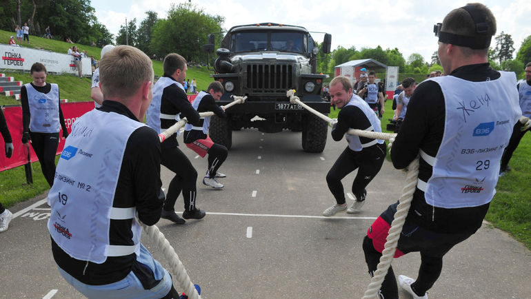 Пройти Гонку Героев можно в различных форматах. Настоящие фанаты борются за победу в чемпионате, призовой фонд которого составляет миллион рублей. Другие участвуют просто так. Ради идеи и здоровья. Хочешь – покупай индивидуальный билет, хочешь – командный. Победить или проиграть в этом случае невозможно. Вопрос не в том, за какое время ты пройдешь трассу, а в том, добежишь ли до конца. Именно такая гонка состоялась 28 февраля на полигоне Алабино. Несколько десятков команд и более тысячи человек прошли дистанцию вне зачета. И среди них – большая команда Внешэкономбанка, из которой для участия в игре были сформированы четыре "взвода", как здесь принято говорить. Вместе с сотрудниками участие в игре принял и председатель Внешэкономбанка Сергей Горьков.