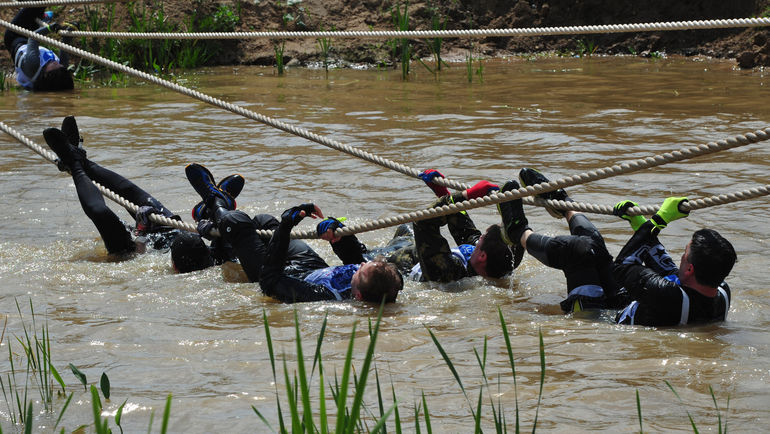 Последнее препятствие в гонке оказалось, пожалуй, самым сложным. Перед самым финишем участникам, используя канаты, предстояло покорить восьмиметровое возвышение. После десяти километров изнурительного бега, когда силы уже на исходе, штурмовать и без того сложное препятствие кажется выше человеческих сил. Именно в такие моменты раскрылся командный дух игры, именно здесь участники могут проявить изобретательность. Первые бегуны, которым удалось покорить препятствие, поднимали членов своего взвода, зацепившихся за канат. Другие – формировали собственными телами живую лестницу, чтобы с ее помощью помочь своим товарищам. Все это не запрещено правилами. Главное, чтобы ты дошел до финиша. А взаимопомощь приветствуется.