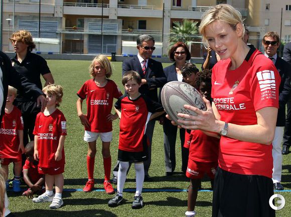 Принцесса Монако Шарлин, увлекающаяся разными видами спорта, посетила детскую школу регби в Монако после того, как стала покровителем регбийного клуба княжества. Фото AFP