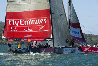 Для того чтобы прорваться в дальнейшую стадию розыгрыша, российской команде необходимо было выиграть у лидеров кругового турнира Emirates Team New Zealand. И поначалу дела в матче развивались в пользу команды капитана Валентина Завадникова - на отрезке против ветра "Синергия" сначала навязала новозеландцам борьбу, а к марке лидировала 7 секунд. Надо отметить, что здесь в Окленде "Синергия" была единственной командой, которой удавалось навязать хозяевам борьбу, хотя бы и на отдельных участках гонки. В первой встрече с Emirates Team New Zealand "Синергия" выиграла старт и сильно уступила на смене ветра, во второй была лучше на участке до первого знака. Увы, но сразу после того, как команды подняли спинакеры, вперед вышли мастеровитые хозяева регаты, которым российская команда уступила в итоге 19 секунд.