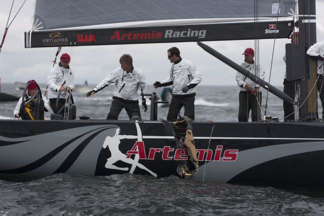 Настоящая же неудачница пятницы – главный претендент 34-го Кубка "Америки", местная Artemis. Команда Торнбьорна Торнквиста, которому в качестве тактика помогает американец Морган Ларсон, отлично справлялась, имела в активе третье, четвертое и пятое места и шла на второй позиции в общем зачете. Однако, во время стартовых маневров перед третьей гонкой дня, в борт шведской RC44 врезалась британская Peninsula Petroleum. Носовая часть британской лодки практически не пострадала и она смогла провести гонку и прибыть на финиш девятой, а вот борт Artemis был поврежден настолько, что ни о каком участии в гонках не могло идти речи. В итоге шведская команда заработала в третьей гонке штрафные 17 очков, что отбросило хозяев регаты со второго аж на девятое место.