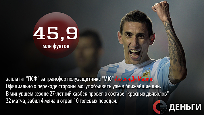 45,9 миллиона фунтов стерлингов заплатит "ПСЖ" за трансфер полузащитника "МЮ" Анхеля Ди Марии.