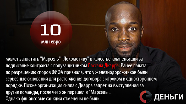 10 миллионов евро может заплатить "Марсель" "Локомотиву" в качестве компенсации за подписание контракта с полузащитником Лассана Диарра.