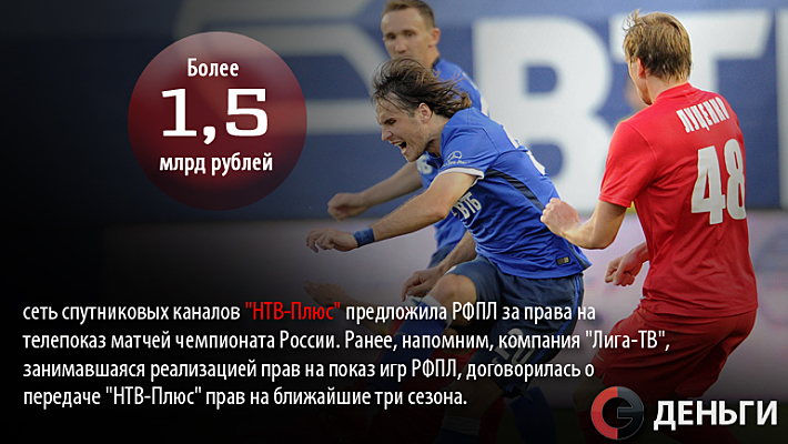 Более 1,5 миллиарда рублей сеть спутниковых каналов "НТВ-Плюс" предложила РФПЛ за права на телепоказ матчей чемпионата России.