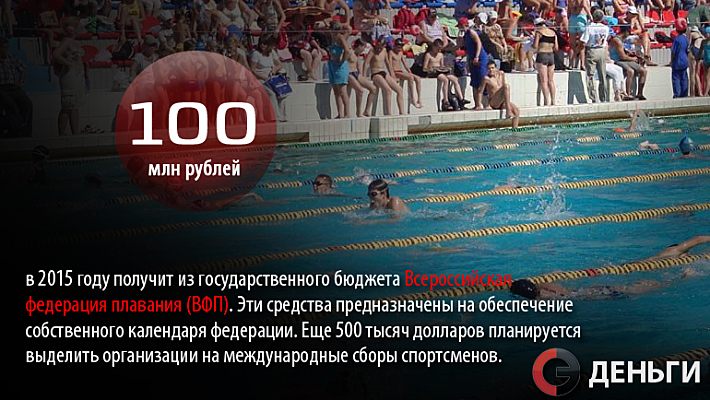 100 миллионов рублей в 2015 году получит из государственного бюджета Всероссийская федерация плавания (ВФП).