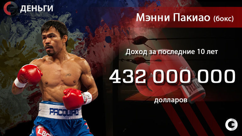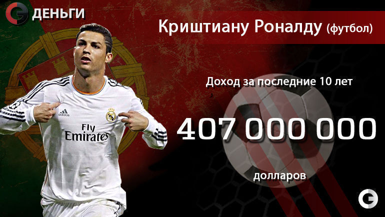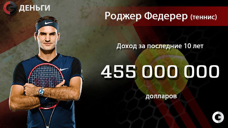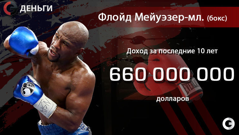 Возглавляет рейтинг американский гольфист Тайгер Вудс, который за указанный период заработал 845 миллионов долларов. Второе место занимает боксер Флойд Мэйуэзер, замыкает тройку баскетболист Коби Брайант (475 миллионов).