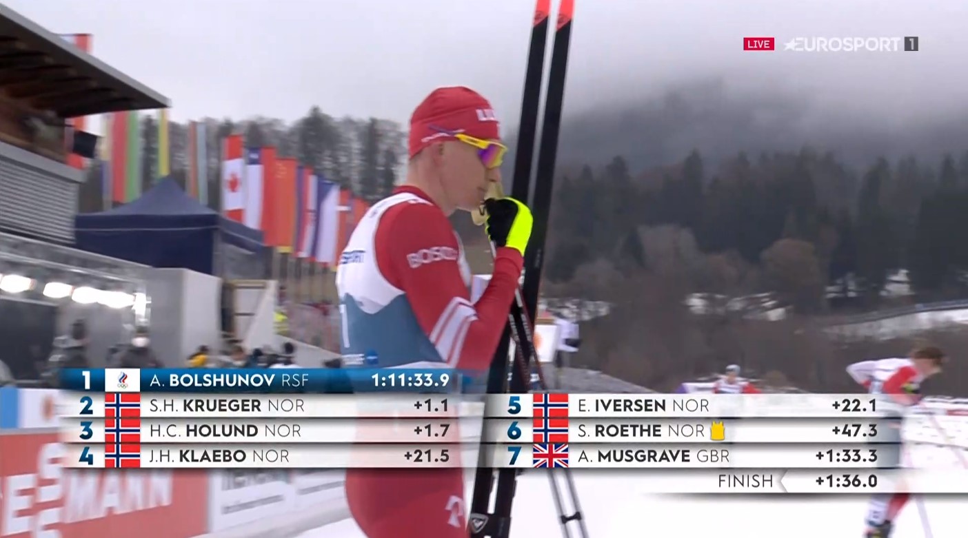 Что же, поздравляем Большунова с первым титулом чемпиона мира и Россию с первой наградой турнира. Сан Саныч сегодня затащил в борьбе с норвежцами и доказал, что с ними можно не только бороться, а и побеждать. Впереди у нас командные спринты, увидимся уже завтра! Хорошего выходного вам!