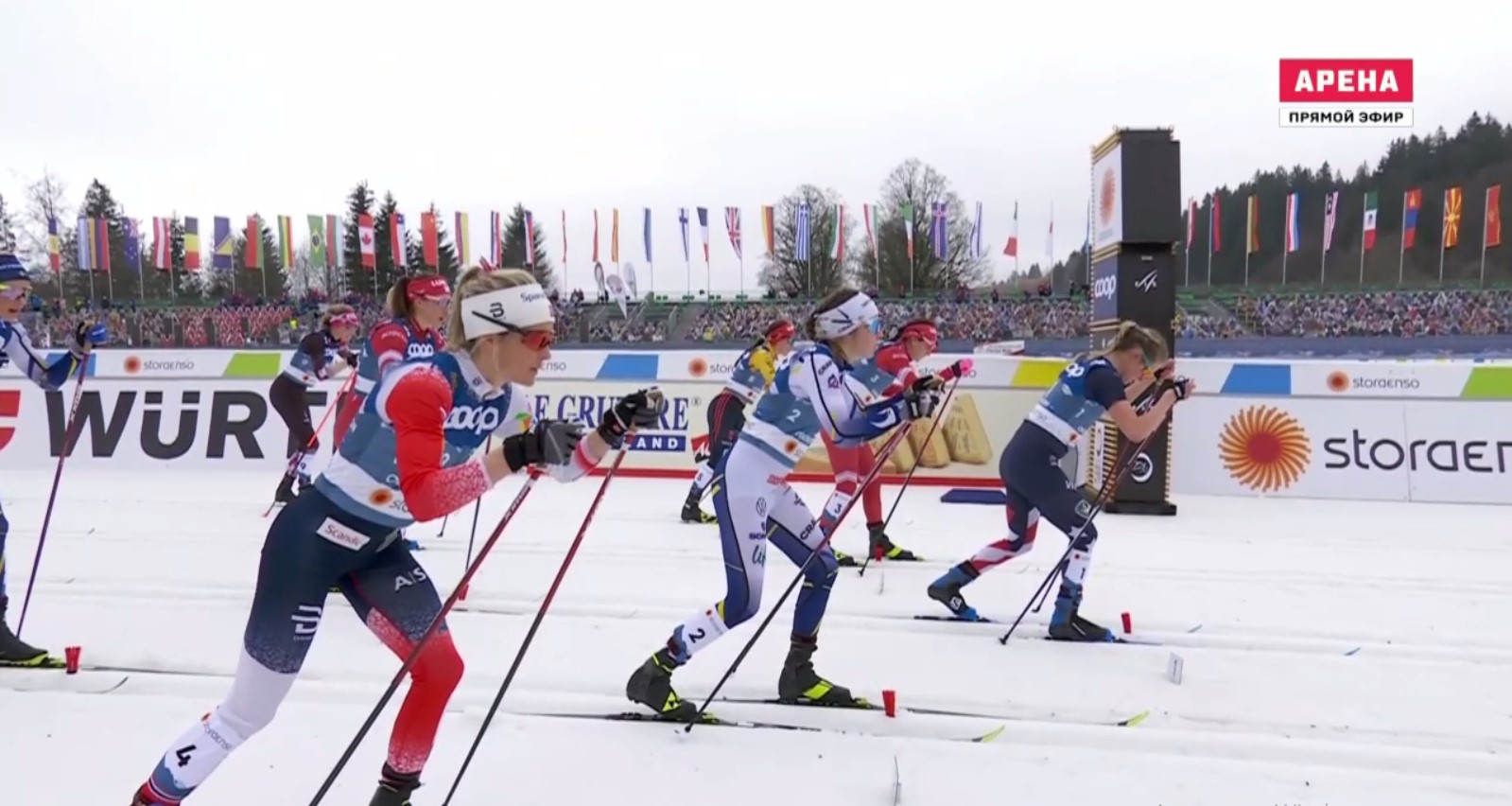 На втором километре Непряева и Сорина находятся в лидирующей группе. До Йохауг всего лишь несколько секунд.