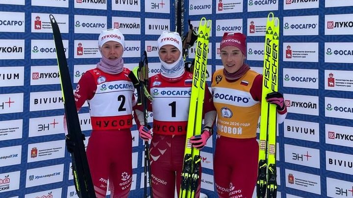 Лыжница Вероника Степанова стала победительницей гонки преследования на третьем этапе Кубка России. Соревнования проходят в Чусовом.