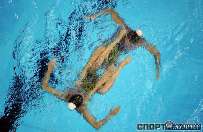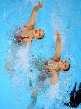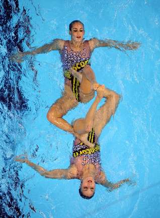 Синхронное плавание. Шанхай (Китай). Чемпионат мира. Дуэты. Техническая программа. 1. ИЩЕНКО/РОМАШИНА (Россия) – 98,200 балла. 2. Хуан Сюэчэнь/Лю Оу (Китай) – 96,500. 3.Карбонель/Фуэнтес (Испания) – 95,400. Для Натальи Ищенко эта золотая медаль чемпионатов мира стала 12-й в карьере. Фото AFP