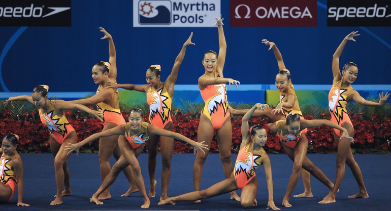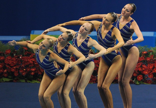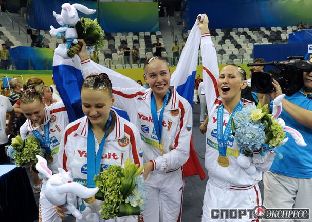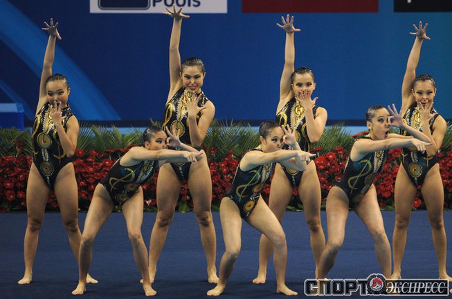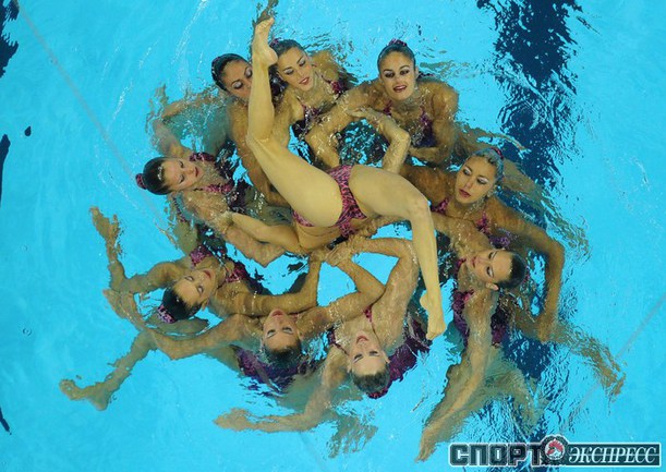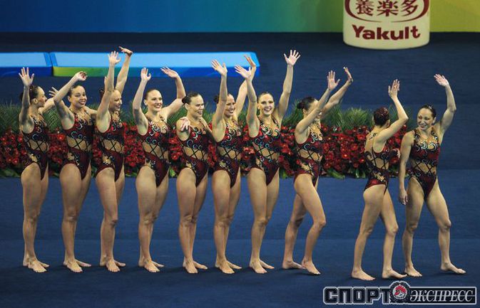 Синхронное плавание. Шанхай. Чемпионат мира. Группы. Комбинация. Финал. 1. Россия - 98,470; 2. Китай - 96,390; 3. Канада - 96,150. Фото AFP