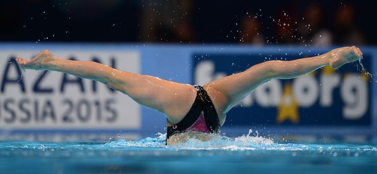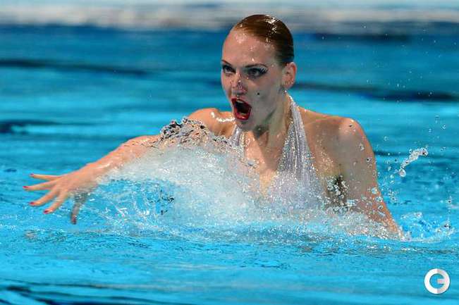 Россиянка Светлана Ромашина выиграла золотую медаль на чемпионате мира по водным видам спорта в Барселоне. Победа в произвольной программе с суммой 97,340 балла стала для Ромашиной уже 14-й по счету на мировых первенствах. Серебро завоевала китаянка Хуан Сючен (95,720), бронза – у испанки Оны Карбонель Бальестеро (94,290). Фото AFP