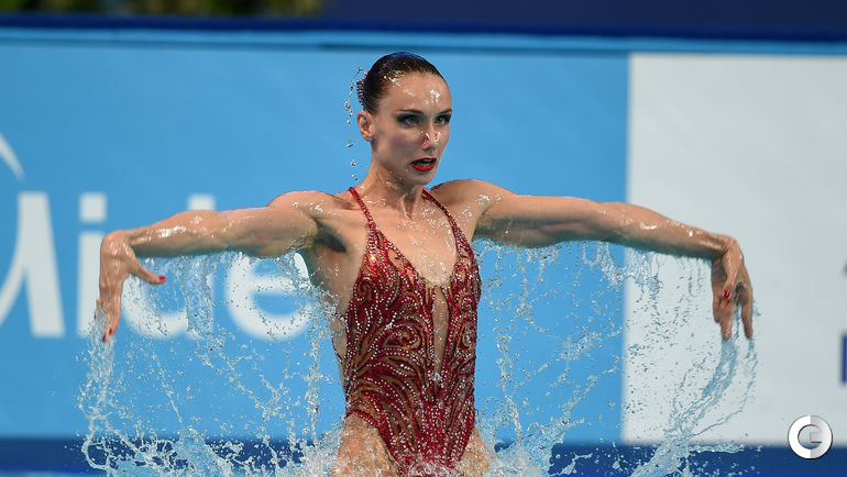 Трехкратная олимпийская чемпионка Наталья Ищенко победила в сольной технической программе на чемпионате мира в Казани. Это золото стало четвертым для сборной России, которая по-прежнему занимает второе место в общекомандном зачете. Отметим также, что для Ищенко эта победа стала 18-й на чемпионатах мира. Фото Александр ФЕДОРОВ, "СЭ"