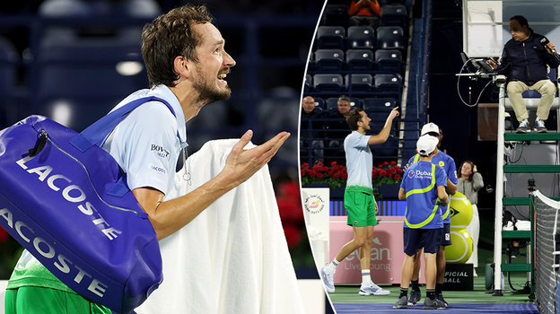 Медведев со скандалом покидает турнир в Дубае. Упустил четыре матчбола и обвинил судью в двойных стандартах