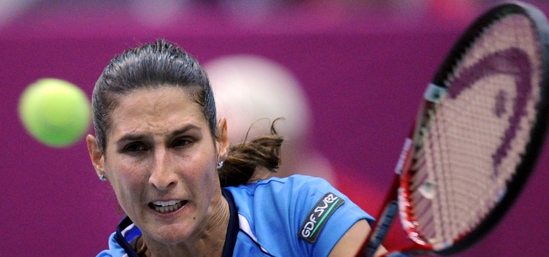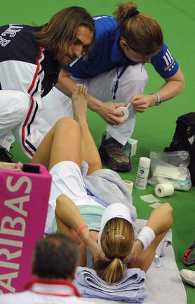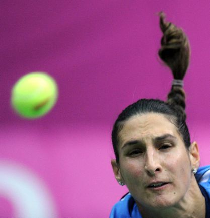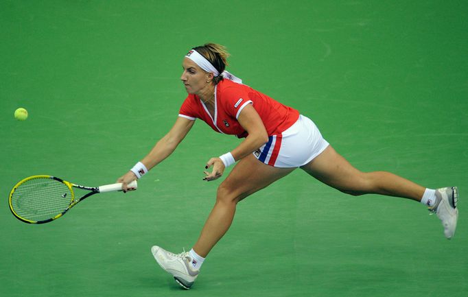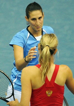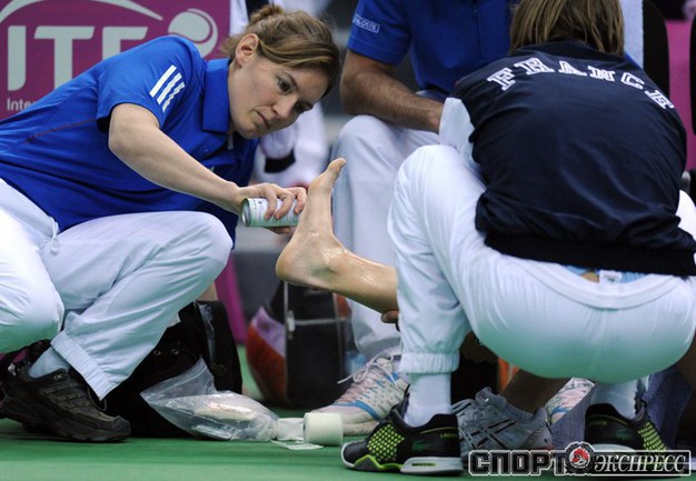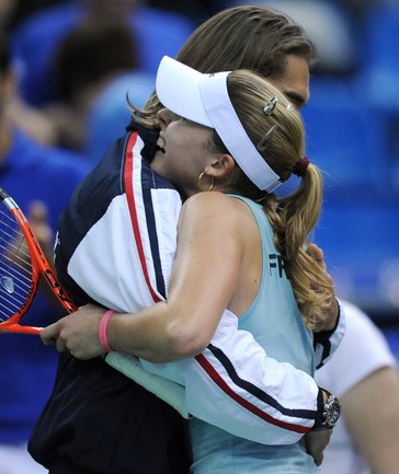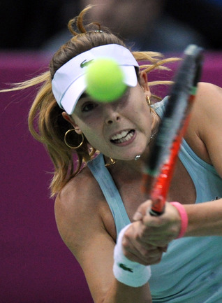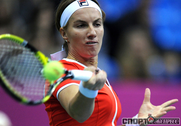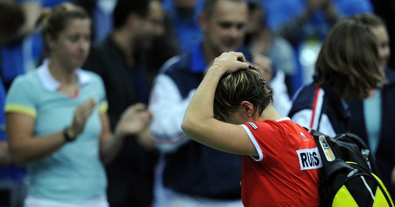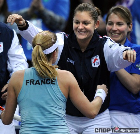 5.02.2011. Москва. "Олимпийский". Кубок федерации. Первый круг. Россия - Франция. Сборная России проиграла обе субботние встречи домашнего матча первого круга Кубка федерации с Францией: Светлана Кузнецова уступила Ализе Корне (6:3, 3:6, 4:6), а Мария Шарапова - Виржини Раззано (3:6, 4:6). Фото AFP