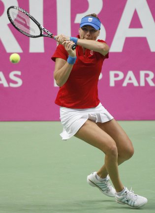 Москва. Кубок федерации. Мировая группа. 1/2 финала. Закрытый корт, хард. Репортаж REUTERS о матче Россия - Италия, в котором российнки завоевали путевку в финал.