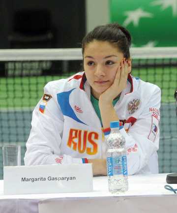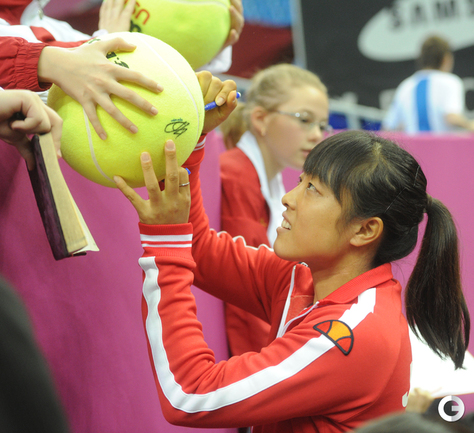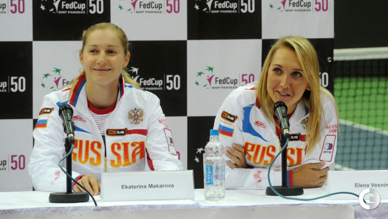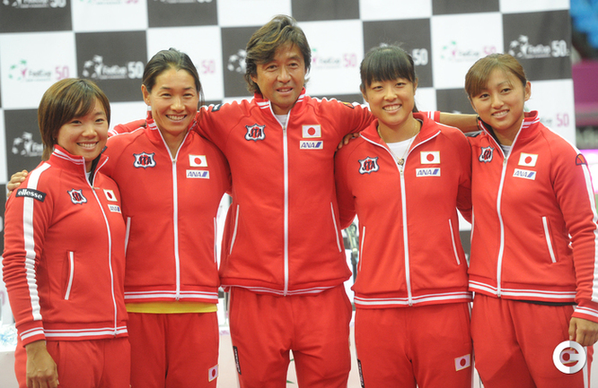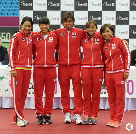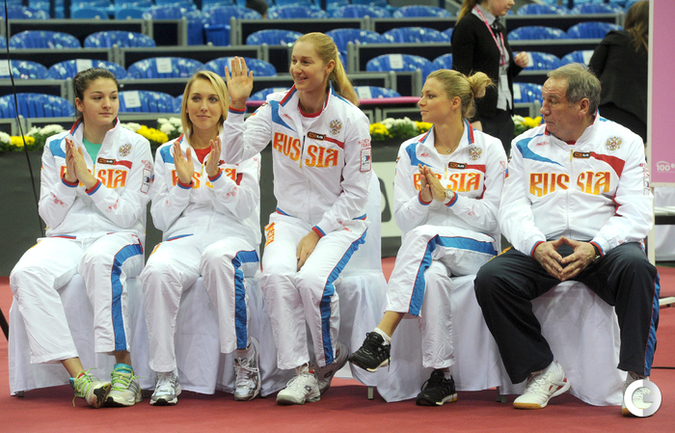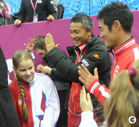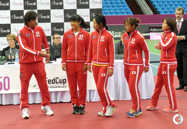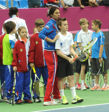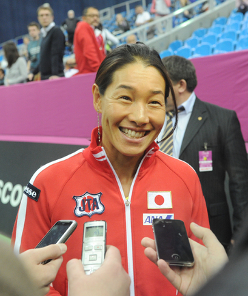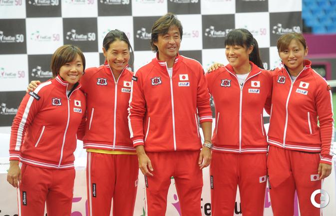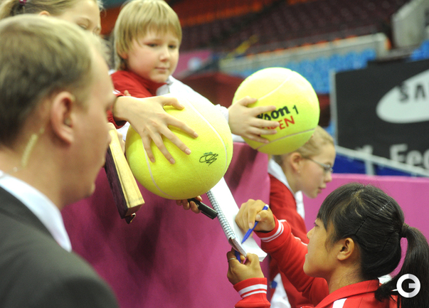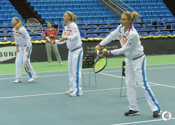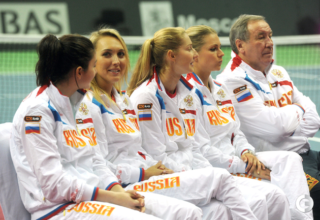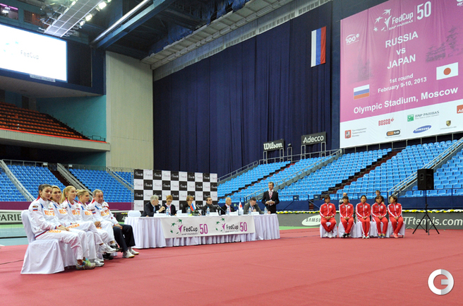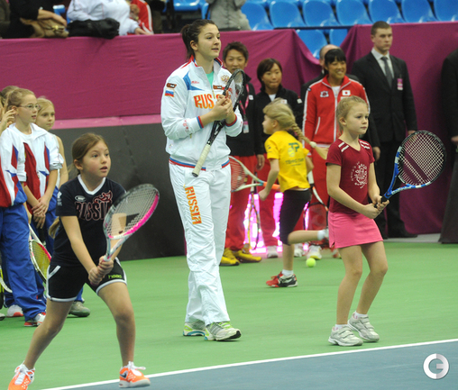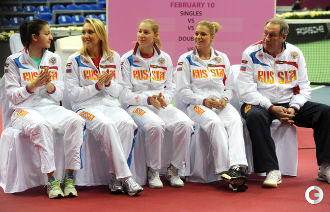 Теннис. Москва. Жеребьевка Кубка федерации. Мария Кириленко и Кимико Дате-Крумм сыграют в стартовом матче четвертьфинала Кубка федерации между сборными России и Японии, который стартует в субботу. После этих двух теннисисток на корт выйдут Екатерина Макарова и Аюми Морита. Фото - Татьяна Дорогутина, "СЭ"