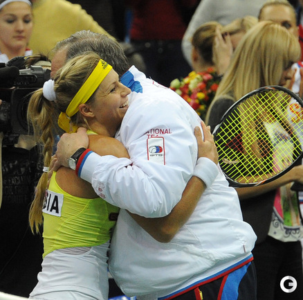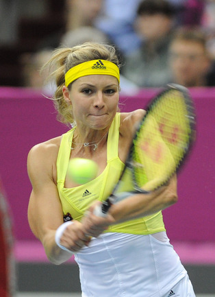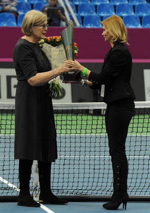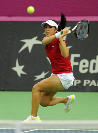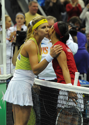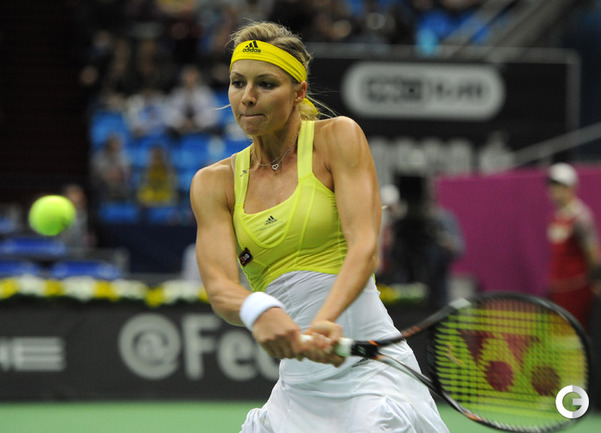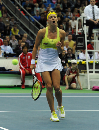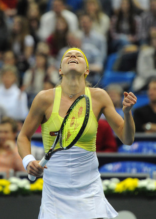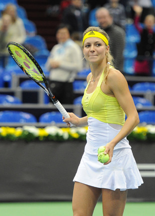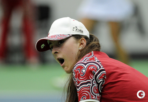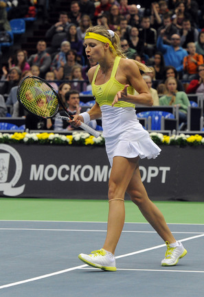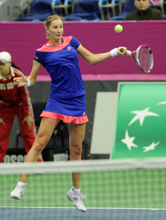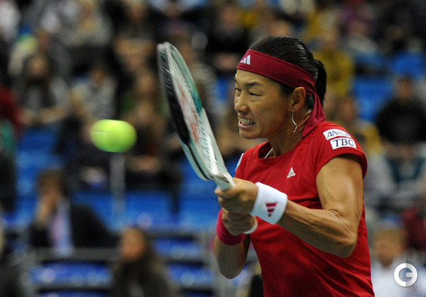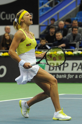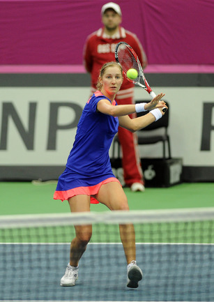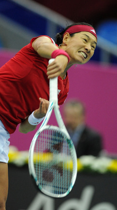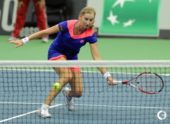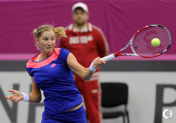 Теннис. Москва. Кубок федерации. 1/4 финала. Закрытый корт, хард. РОССИЯ - Япония - 1-1. КИРИЛЕНКО - Дате-Крумм - 7:6 (7:3), 6:4. МАКАРОВА - Морита - 2:6, 2:6. В конце второго сета Мария Кириленко из-за усталости взяла медицинский тайм-ау. Фото - Никита УСПЕНСКИЙ, "СЭ"