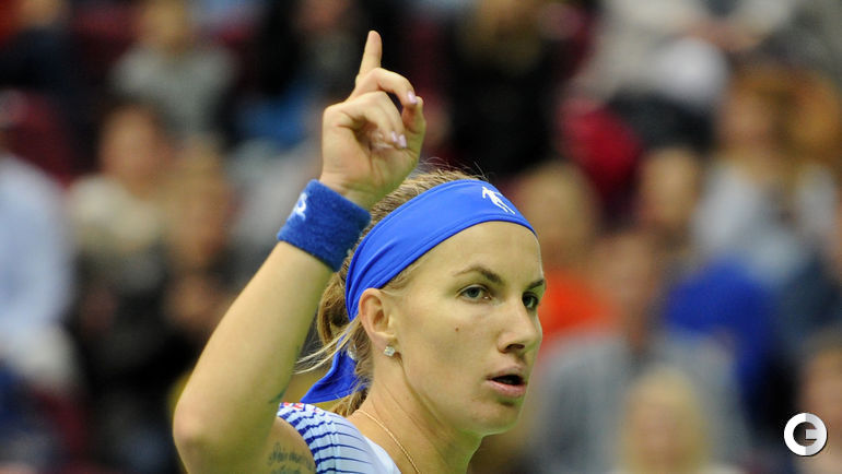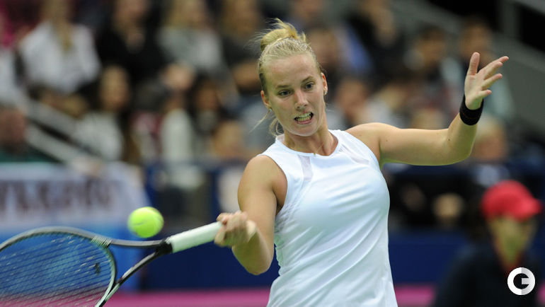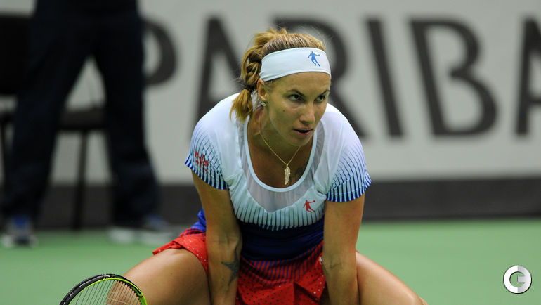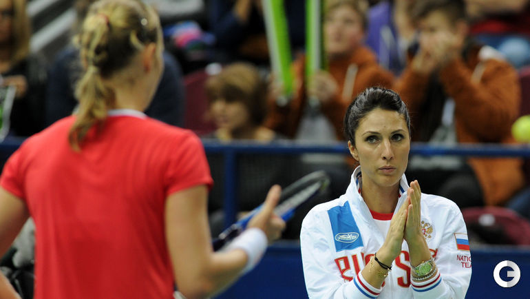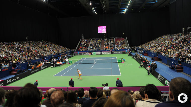 Во втором матче 1/4 финала Кубка федерации Россия – Голландия Светлана Кузнецова в трех сетах уступила Ришел Хогенкамп. Отметим, что Кузнецова и Хогенкамп установили рекорд по продолжительности одиночного матча в Кубке федерации - ровно 4 часа. В первой встрече дня Екатерина Макарова за 73 минут проиграла Кики Бертенс. Планируется, что завтра сначала Кузнецова сыграет против Бертенс, а потом Макарова – против Хогенкамп. На парную встречу у России заявлены Мария Шарапова/Дарья Касаткина, у Голландии – Синди Бюргер/Аранча Рус. Фото Никита УСПЕНСКИЙ, "СЭ"