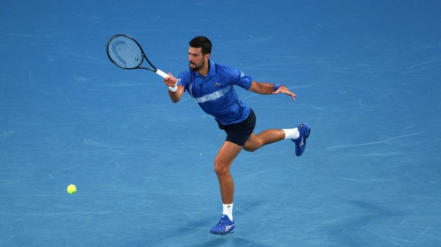 Сербский теннисист Новак Джокович проводит матч против американца Нишеша Басаваредди в первом круге Открытого чемпионата Австралии-2025.