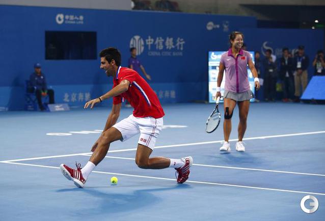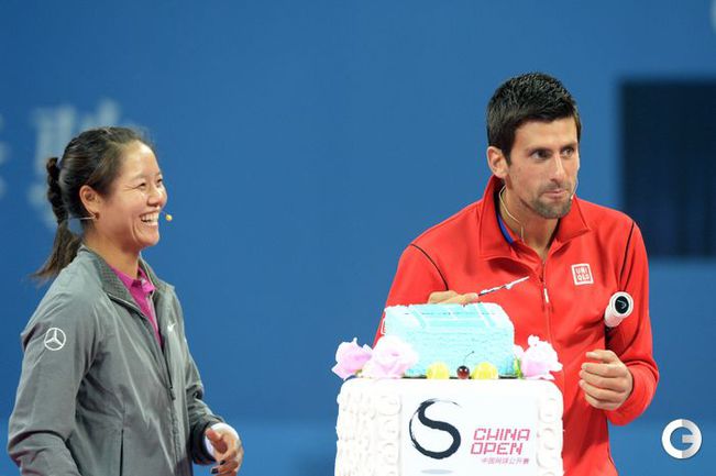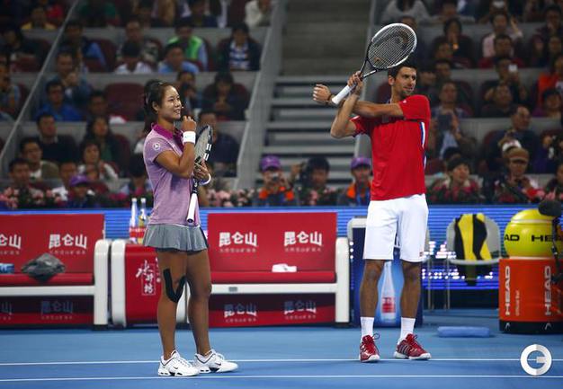 Теннис. Первая ракетка мира Новак Джокович и китаянка Ли На, занимающая пятую строчку в рейтинге WTA, провели выставочный матч в Пекине. Примечательно, что за каждый эйс, выполненный в матче с Джоковичем, Ли На получит 6178 долларов. Эти деньги затем пойдут на благотворительные цели. Фото REUTERS и AFP