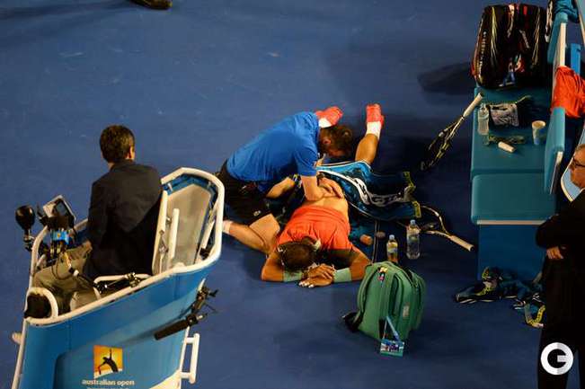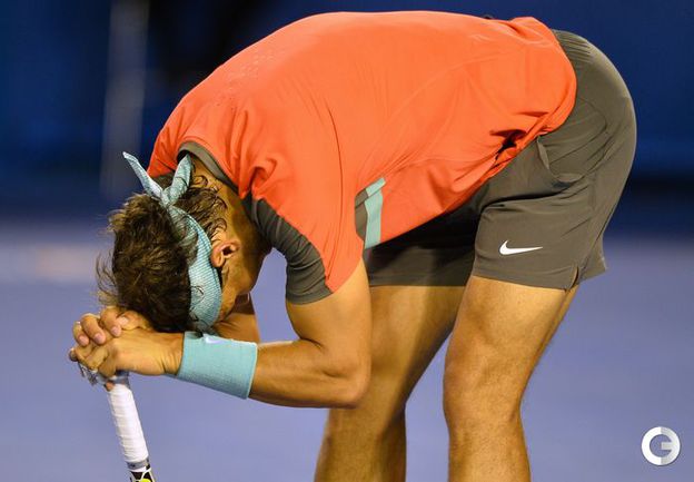 Мельбурн (Австралия). Турнир "Большого шлема" Australian Open. Общий призовой фонд 31 100 000 долларов. Открытые корты, хард. Мужчины. Одиночный разряд. Финал. Вавринка (Швейцария, 6) - Надаль (Испания, 1) - 6:3, 6:2, 3:6, 6:3. В финальном матче Открытого чемпионата Австралии швейцарец Станислас Вавринка победил испанца Рафаэля Надаля - 6:3, 6:2, 3:6, 6:3. Эта победа стала для Вавринки первой на турнирах "Большого шлема". Стоит отметить, что испанца явно мучали проблемы со здоровьем. Первая ракетка мира несколько раз обращался к медику на корте, чтобы тот размял ему мышцы спины. Кроме того, в ходе второго сета Надаль покидал корт, взяв тайм-аут.Фото REUTERS и AFP
