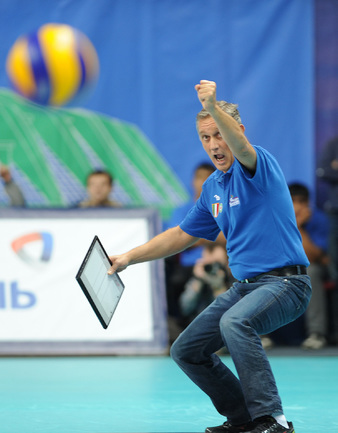 Лига чемпионов. Женщины. Групповой турнир. 1-й тур. Группа B. "Динамо" М (Россия) – "Пьяченца" (Италия) – 3:1 (25:21, 25:27, 25:23, 25:19). Наставник итальянского клуба Джованни Капрара в 2005—2008 годах возглавлял женскую сборную России. Фото - Никита Успенский, "СЭ"
