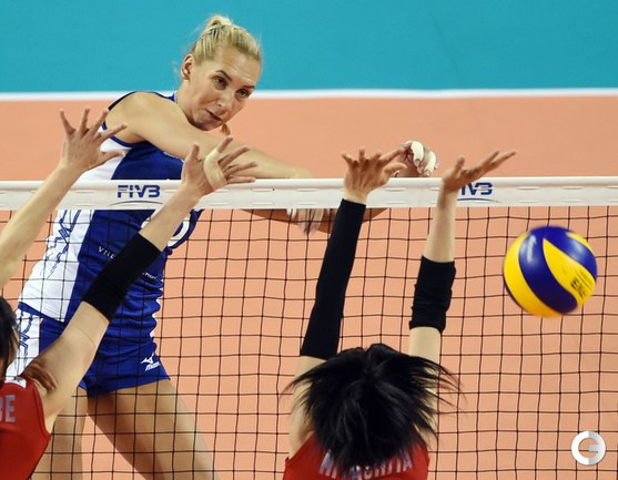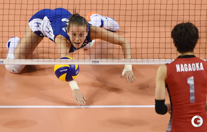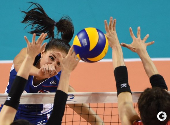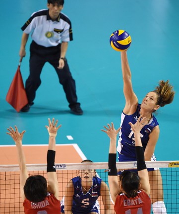 Токио. "Гран-при". Финальный раунд. Япония – РОССИЯ – 3:1 (22:25, 25:20, 25:21, 25:17). Р: Кошелева (23), Малых (19), Подскальная (7), Обмочаева, Заряжко (обе – по 4), Щербань, Пасынкова, Фетисова (все – по 3), Косьяненко (1). Свой следующий матч подопечные Юрия Маричева проведут завтра против Бельгии. Фото AFP
