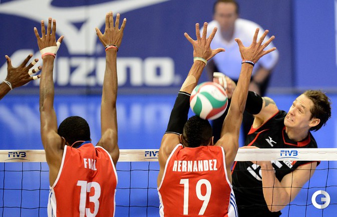 Волейбол. Лонг-Бич. Квалификационные матчи сборных Канады против сборной Кубы и сборной США против Мексики. Турнир NORCECA. Фото AFP