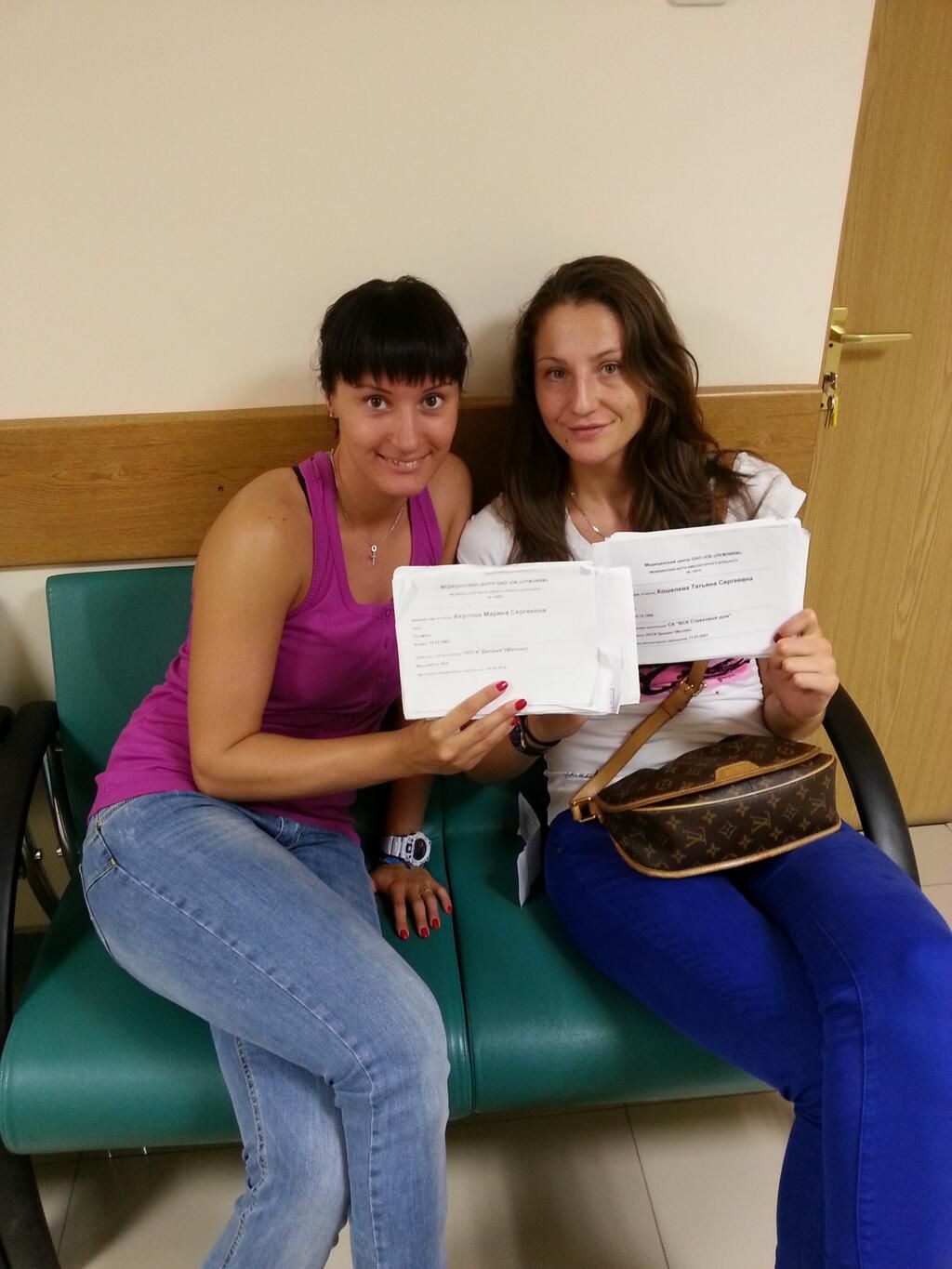 Татьяна Кошелева, нападающая сборной России и московского "Динамо" (справа): "Проходим медобследование".