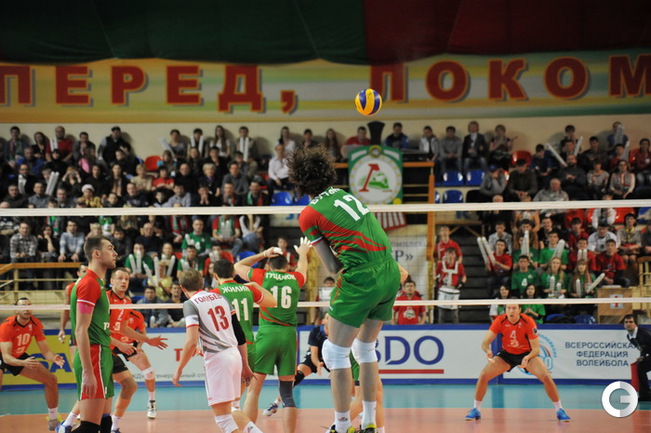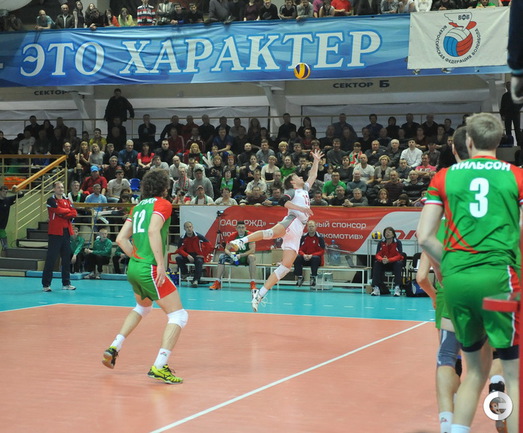 Волейбол. Чемпионат России. Плей-офф. Мужчины. 1/4 финала. Второй матч. "Локомотив" (Новосибирск) – "Белогорье" (Белгород) – 3:0 (25:22, 25:22, 25:14). "Локомотив" одержал вторую победу в 1/4 финала чемпионата России над "Белогорьем". Таким образом, счет в серии стал 2-0 в пользу сибиряков. Фото - Алексей Вьюгин