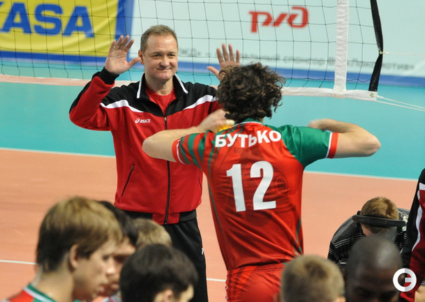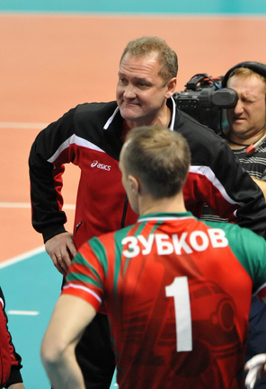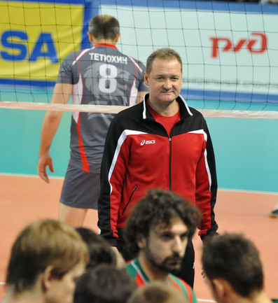 Волейбол. Чемпионат России. Мужчины. Суперлига. 4-й тур. "Локомотив" (Новосибирск) – "Белогорье" (Белгород) – 1:3 (16:25, 25:18, 23:25, 22:25). Главный тренер и президента белгородцев Геннадий Шипулин не поехал в Новосибирск из-за дел, связанных со строительством в городе нового универсально-спортивного зала на 10 тысяч мест. Игрой чемпионов и обладателей Кубка России руководил старший тренер клуба Борис Колчинс. Фото - Алексей Вьюгин