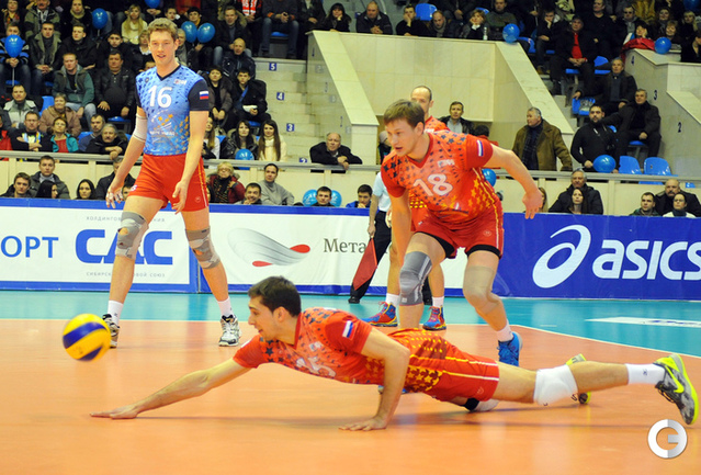 В состоявшемся в Белгороде Матче звезд команда Вадима Хамутцких в четырех партиях обыграла команду Константина Ушакова. Главным героем поединка - как и только что завершившегося Кубка России - стал блокирующий "Белогорья" Дмитрий Мусэрский, выигравший конкурс на самую сильную подачу и с блеском выступивший в амплуа либеро. Фото - Юрий Боград