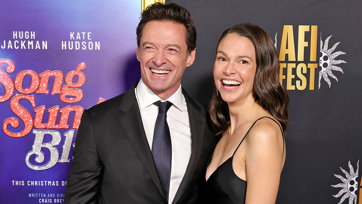 57-летний Джекман и 50-летняя Фостер пришли на премьеру фильма «Песня звучит печально», в котором актер исполнил главную роль. Мероприятие прошло в рамках фестиваля AFI в Лос-Анджелесе. Хью был в белой рубашке с синим галстуком, черном костюме и туфлях. Саттон позировала фотографам в черном платье-комбинации с декольте, дополненном золотым браслетом и клатчем со стразами.Ей сделали локоны и естественный макияж.